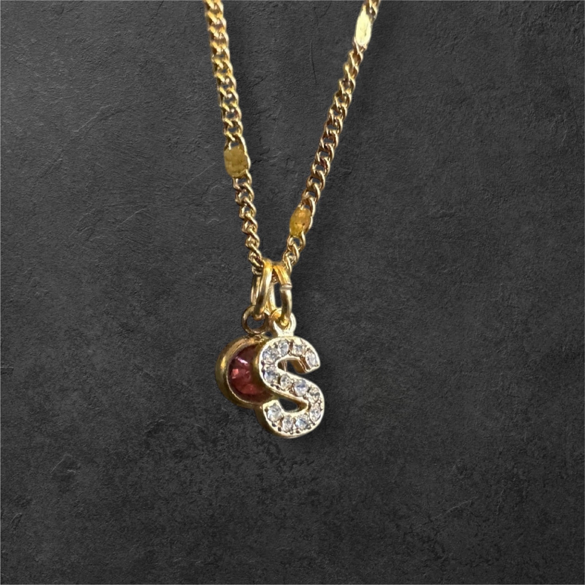 Personalised Collection - Real Gold plated Stainless steel Chain with Cubic Zirconia Char and Cubic Zircon Initial.