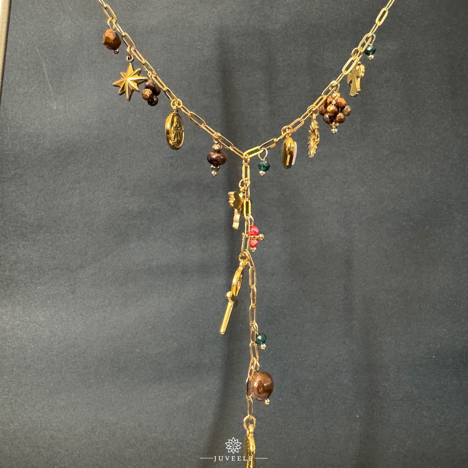 Charm Collection - Brown rope 18K Gold plated Stainless steel Pendants
